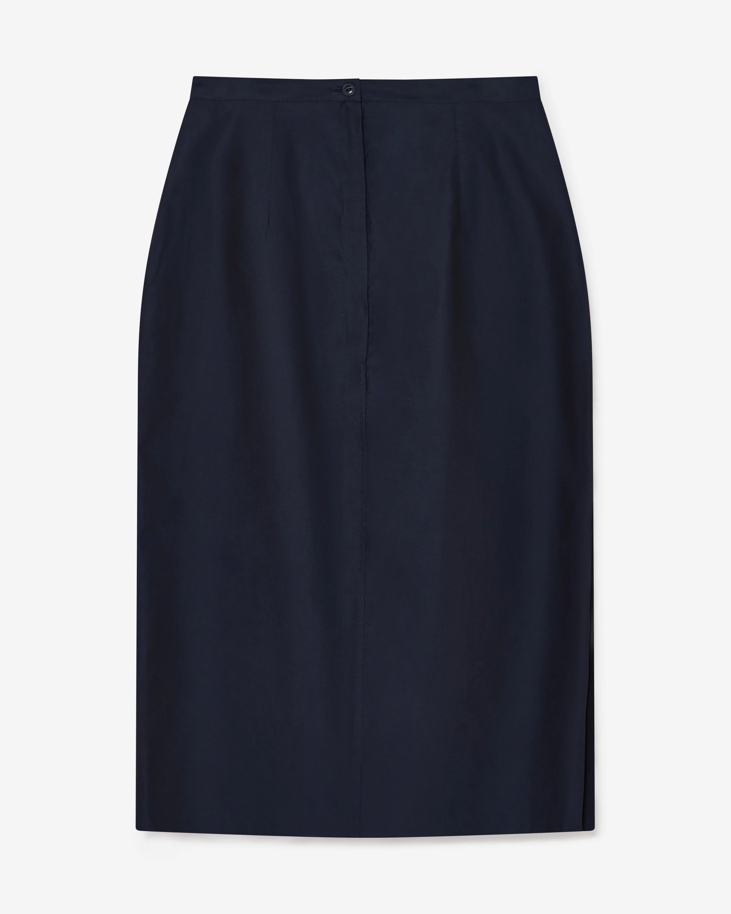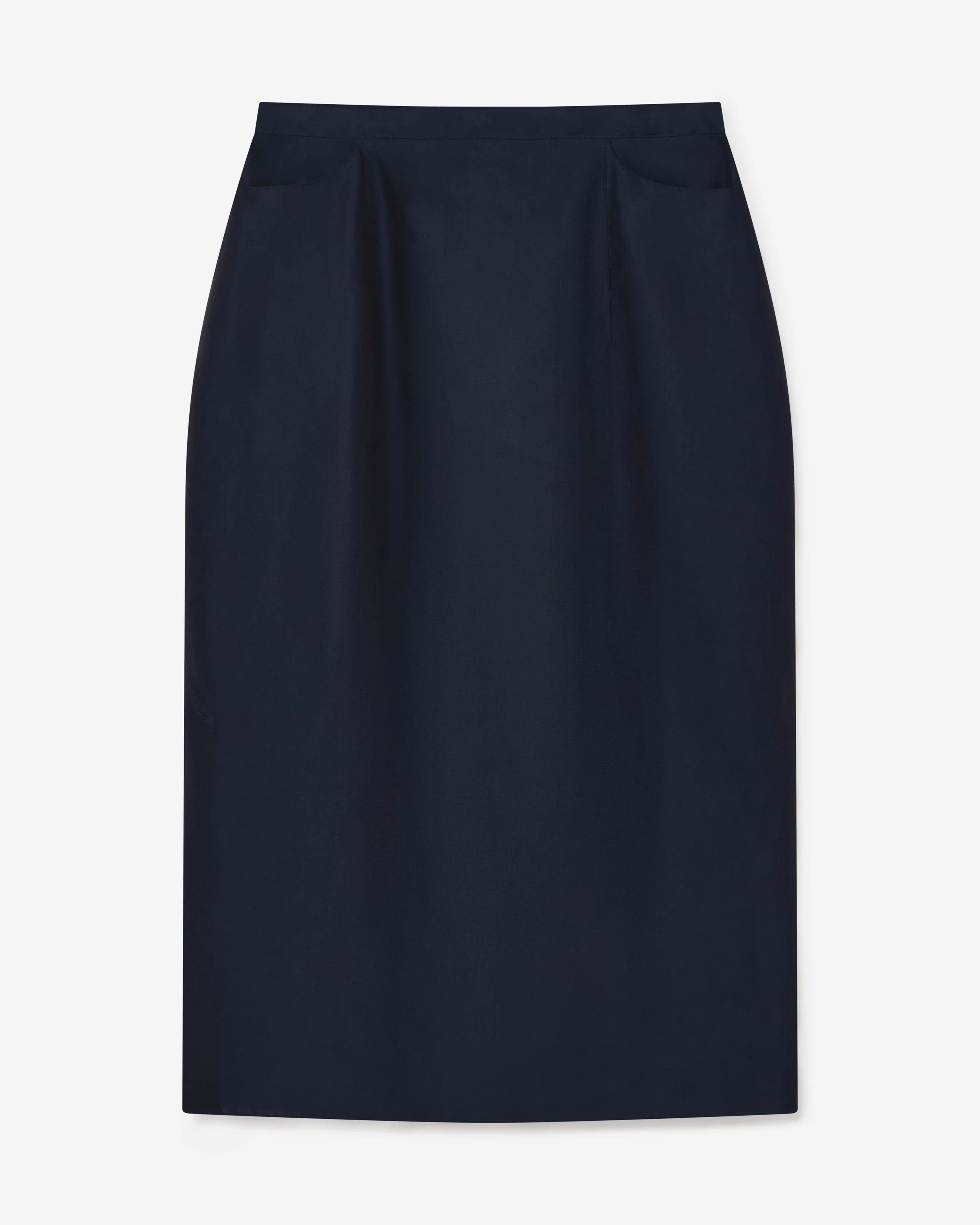 Straight sided skirt, knee length with two front pockets.